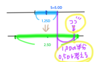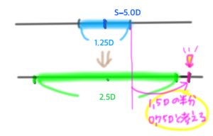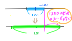 ④動かす乱視を1.25Dより1つ狭い1.0Dと考えて計算しよう
