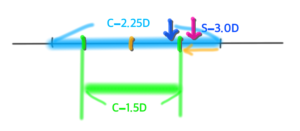 0.75Dの前後の乱視なので、乱視は-1.0Dか-0.5Dに入れ替えて考えます。