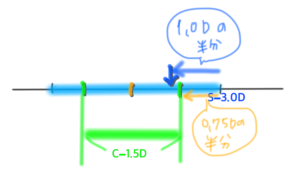 C-2.25DをC-1.5Dにしたいので、乱視の幅は狭くなります。