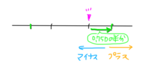 後ろのピントは、動かしたい1.5Dの乱視の半分の度数の0.75Dが右(プラス方向)に動きます。
